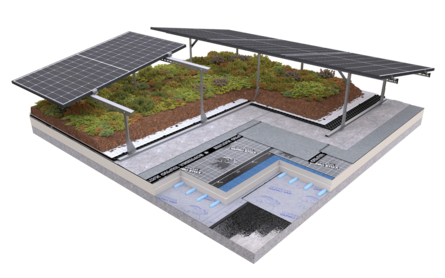 SOPREMA hat die passenden Gründachsysteme für große und kleine Flächen sowie für die Kombination mit PV. Beim SOPREMA Gründachsystem extensiv können Substrattyp, Schichtdicke und Begrünung frei kombiniert werden; das ermöglicht unterschiedliche Ausführungsvarianten. Das Spektrum reicht vom leichten Sedumdach bis zum insektenfreundlichen Dachbiotop mit flächig modelliertem Substrateinbau und artenreicher Vegetation.