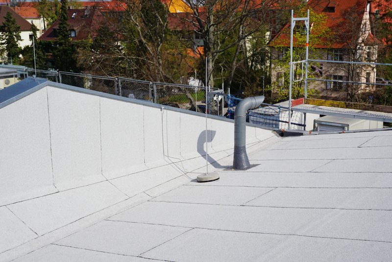 Auch bei der Abdichtung dieser Industriehalle von Bosch setzt man auf die Vorteile eines hellen Daches und hat sich für die Hochwert-Bitumenoberlagsbahn SOPREMA Vapro alpino entschieden. Die Bahn überzeugt mit hoher Qualität in den technischen Werten sowie einer durchdachten Kombination von gleich zwei klimaschonenden Effekten: Ein sehr hoher SRI-Wert > 50 sorgt für die energiesparende Cool-Roof-Wirkung. Darüber hinaus kann die Bahn aufgrund einer photokatalytischen Schicht auf der Beschieferung schädliche Stickoxide in der Luft binden und somit die Luftqualität verbessern.