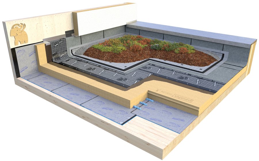 - Neubau, Sanierung, Gründach, Auflast, frei bewittert – das Vapro System passt quasi immer. Und es erlaubt sichere Aufbauten auch bei nachträglichen Planungsanpassungen und Korrekturen. Beispielsweise wenn kurz vor der Ausführung die Entscheidung für einen anderen Dämmstoff und somit eine andere Befestigungsart fällt oder wenn doch partiell ein Gründach angelegt werden soll.
