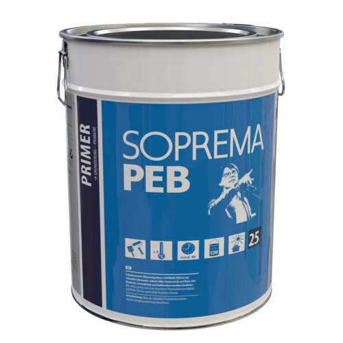 SOPREMA PEB wird als Bitumenvoranstrich nach den Technischen Regeln für die Planung und Ausführung von Abdichtungen mit Polymerbitumen- und Bitumenbahnen (abc der Bitumenbahnen vdd e.V.), Flachdachrichtlinien (ZvdH e.V.) und DIN 18531 ff. auf mineralischen Untergründen, Metall, Bitumenbahnen und anderen bitumen- und lösemittelbeständigen Untergründen verwendet, um eine zuverlässige Haftung bei der Verklebung oder Verschweißung von Bitumenbahnen, zu erzielen. SOPREMA PEB ist nicht für die Verwendung in Innenräumen geeignet.
