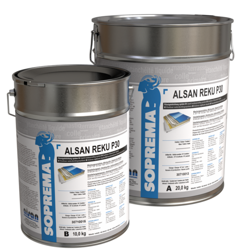ALSAN REKU P30 wird in wasserunterlaufsicheren SOPREMA Systemaufbauten nach den Technischen Regeln für die Planung und Ausführung von Abdichtungen mit Polymerbitumen- und Bitumenbahnen (abc der Bitumenbahnen vdd e.V.), Flachdachrichtlinien (ZvdH e.V.), DIN 18531 ff. und ZTV-ING, Teil 7, Abschnitt 1, eingesetzt.