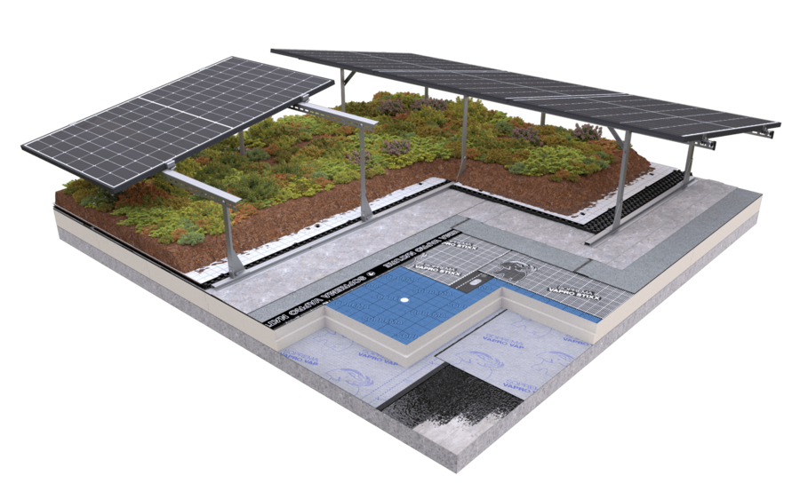 Direkt zu den Aufbauten für ein Industriedach gemäß Industriebaurichtlinie: mit Bitumenabdichtung // mit Kunststoffbahnen.